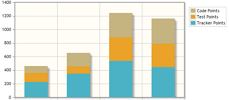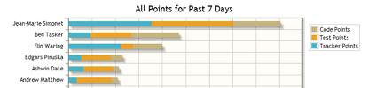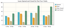 This chart shows total activity in the Issues Tracker for a given time period, again by coding, testing, and working in the tracker.
