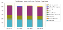 This chart shows the total number of open issues over time. They are broken down by status code (Open, Confirmed, Pending, and so on).